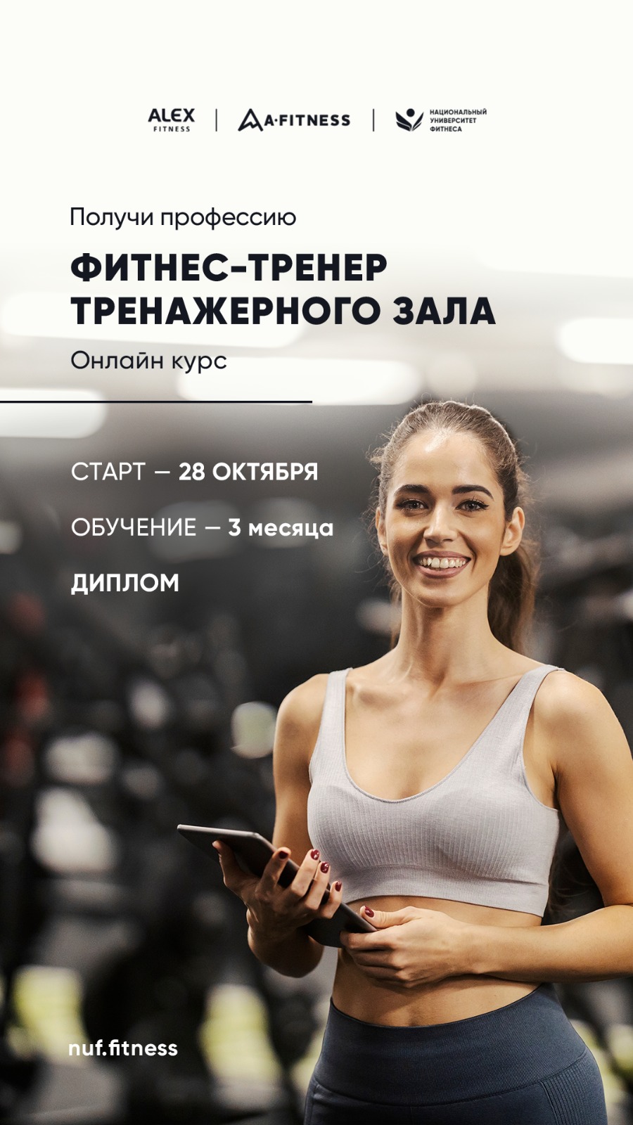 Лучшим студентам даём рекомендации и возможность стать сотрудником сети фитнес-клубов Alex Fitness и A-Fitness.